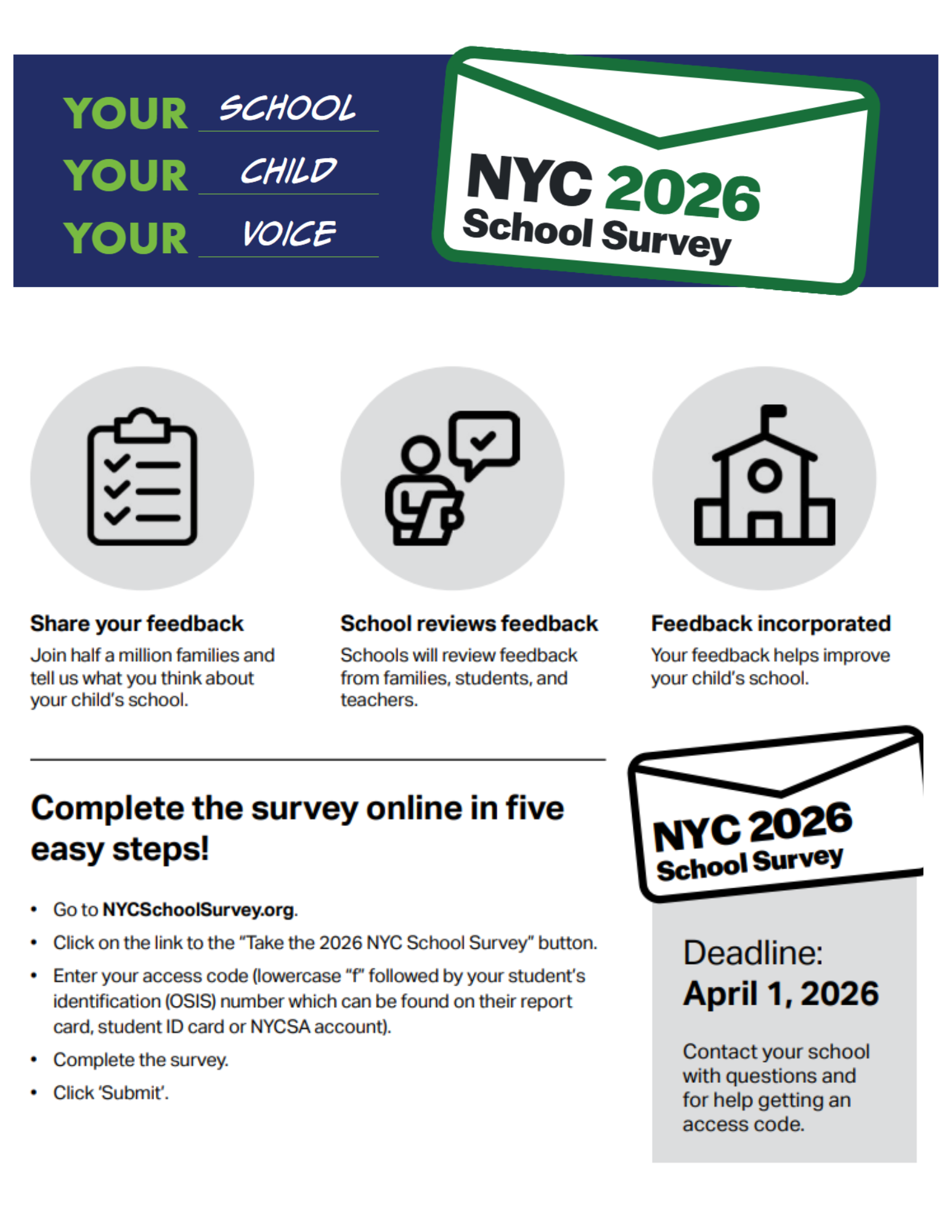 NYC School Survey Deadline April 1st! Go to nycschoolsurvey.org to complete the school survey. Please contact Mrs.Turano with any questions.